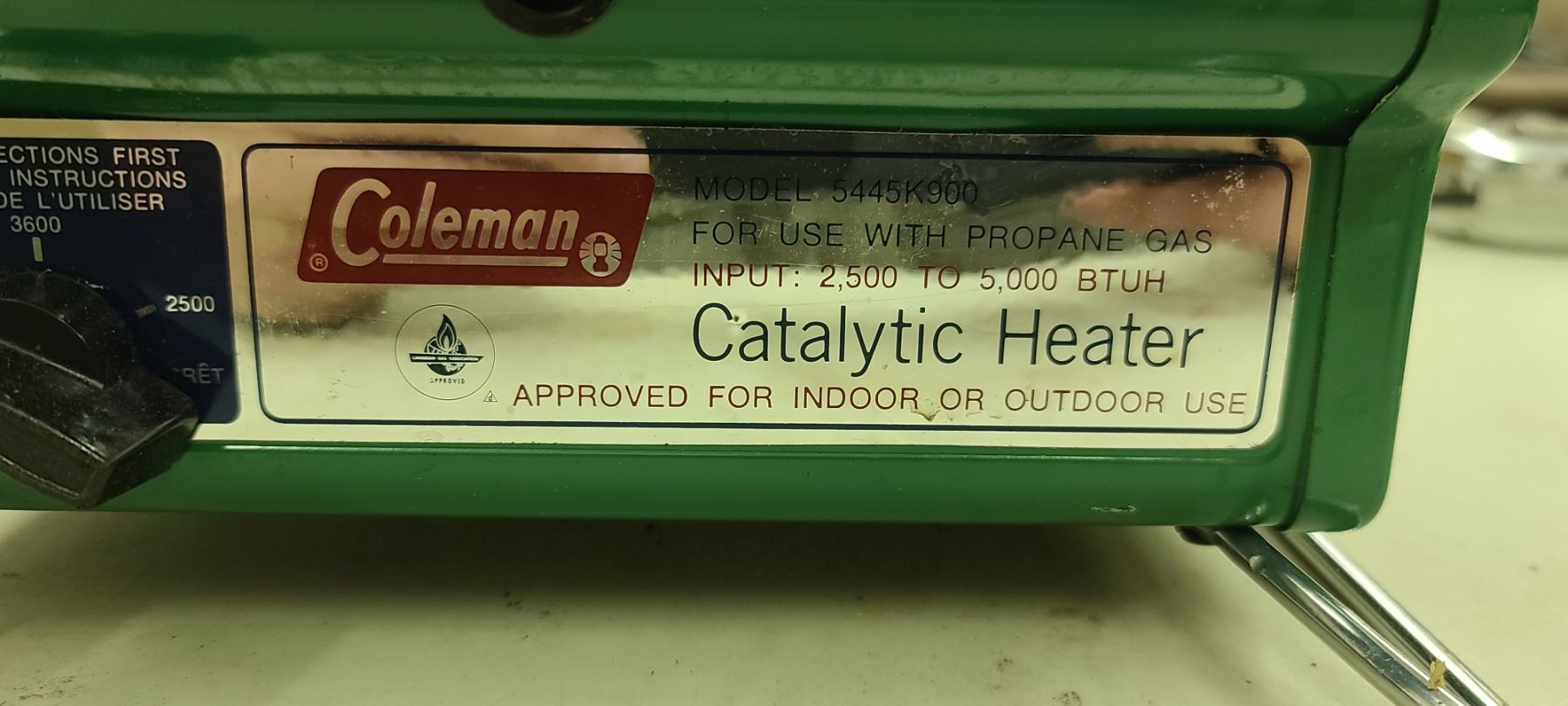COLEMAN CATALYTIC HEATER - PROPANE FOR INDOOR AND OUTDOOR 2500 TO 500 BTUH