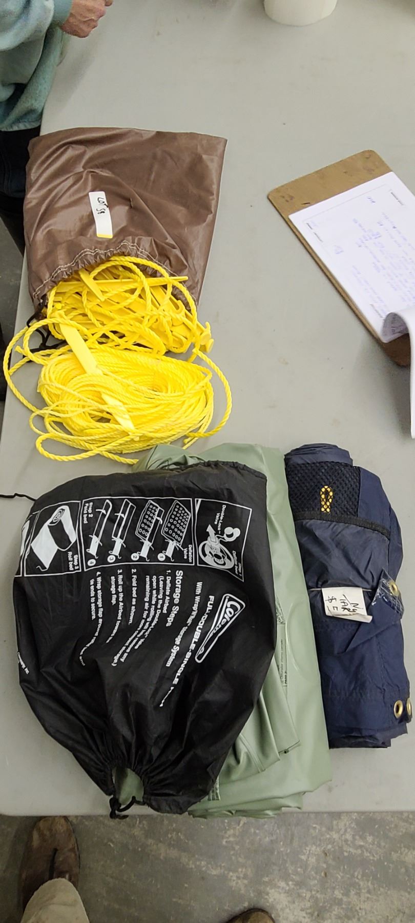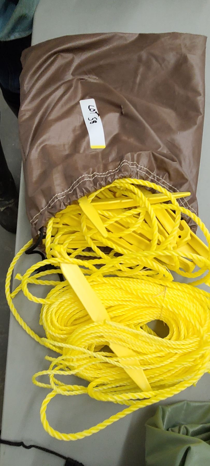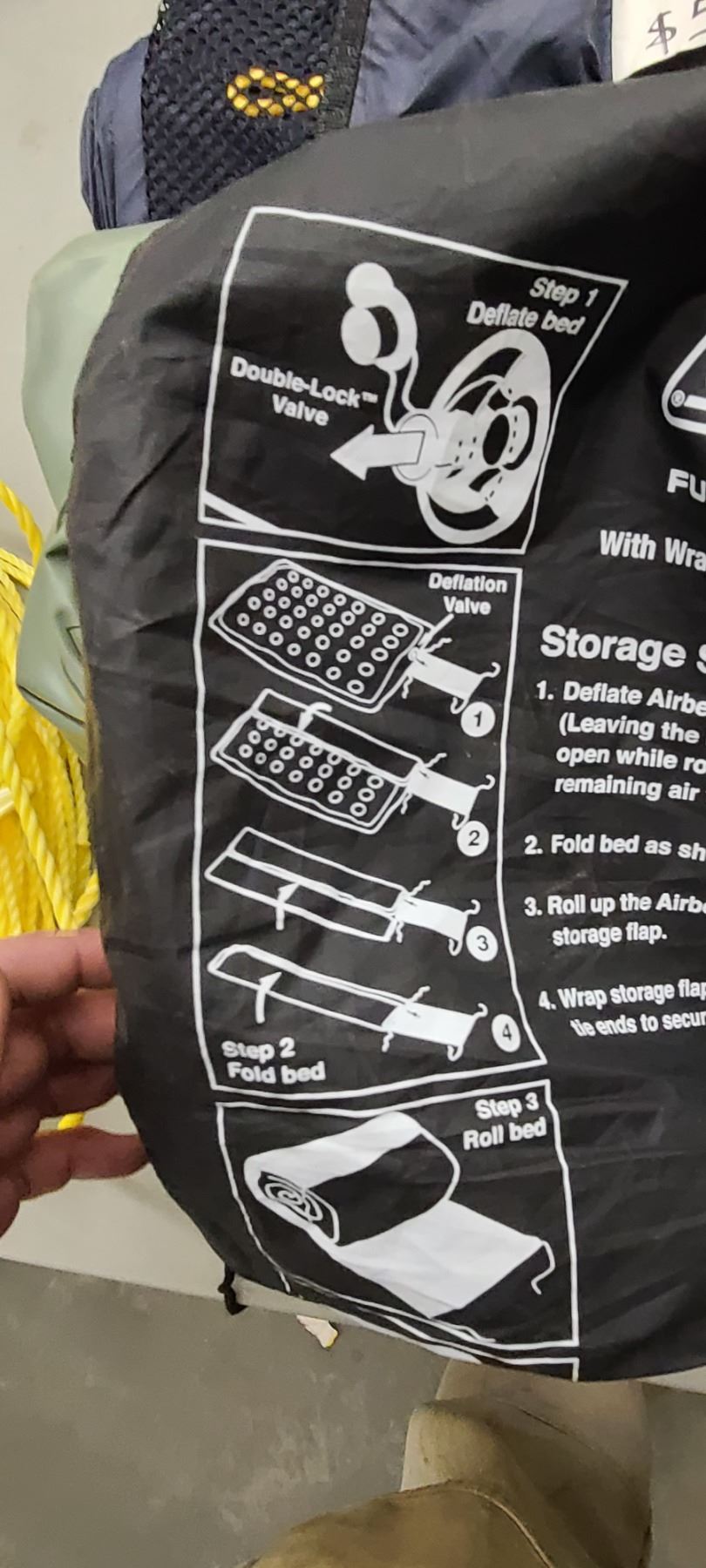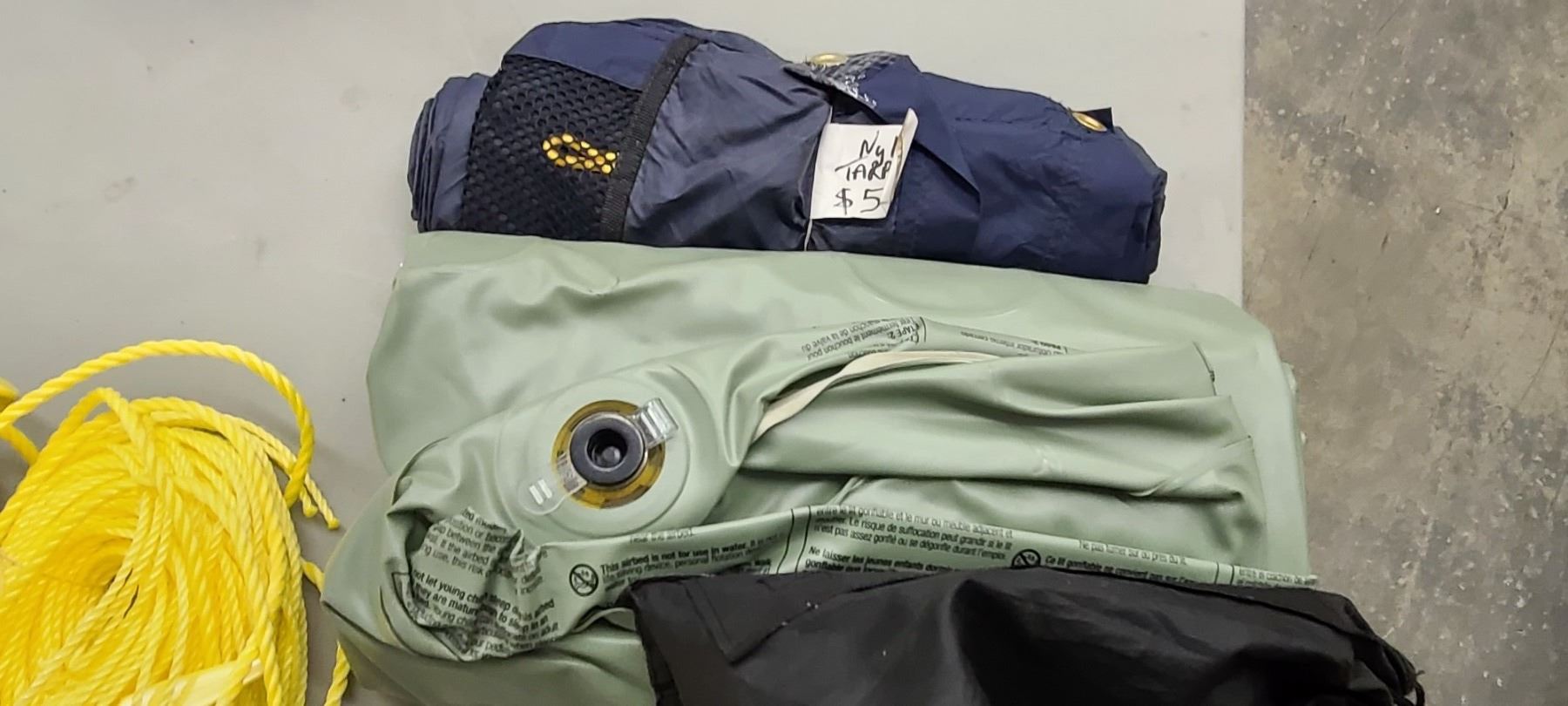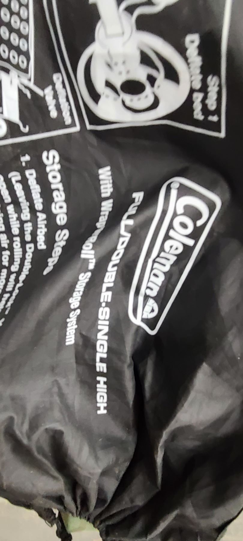 COLEMAN DOUBLE AIR BED, NYLAN TARP, TENT PEGS AND ROPES