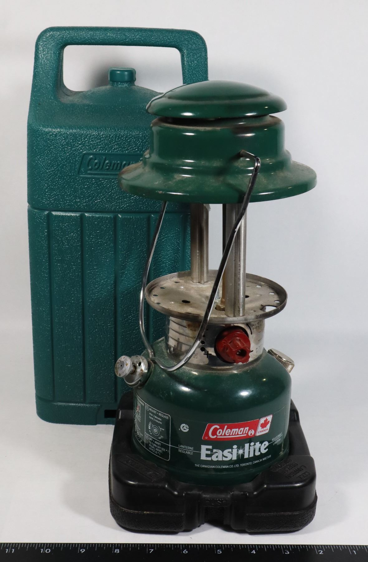 COLEMAN TRAVEL CASE (ONE CLIP DAMAGED, STILL SECURE IN CASE). STAMPED CANADA 2/86