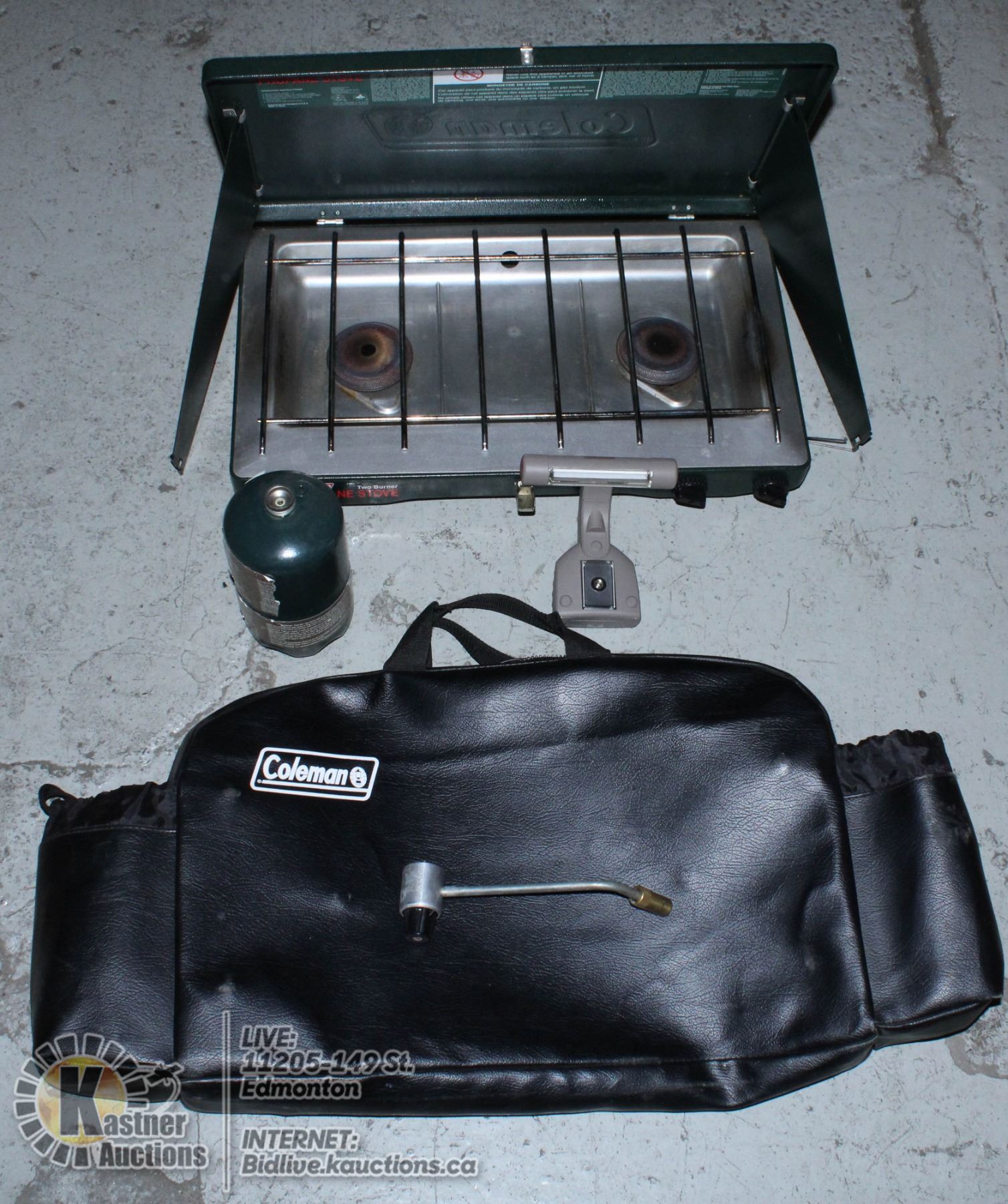 COLEMAN PROPANE STOVE WITH TANK, CONNECTOR,