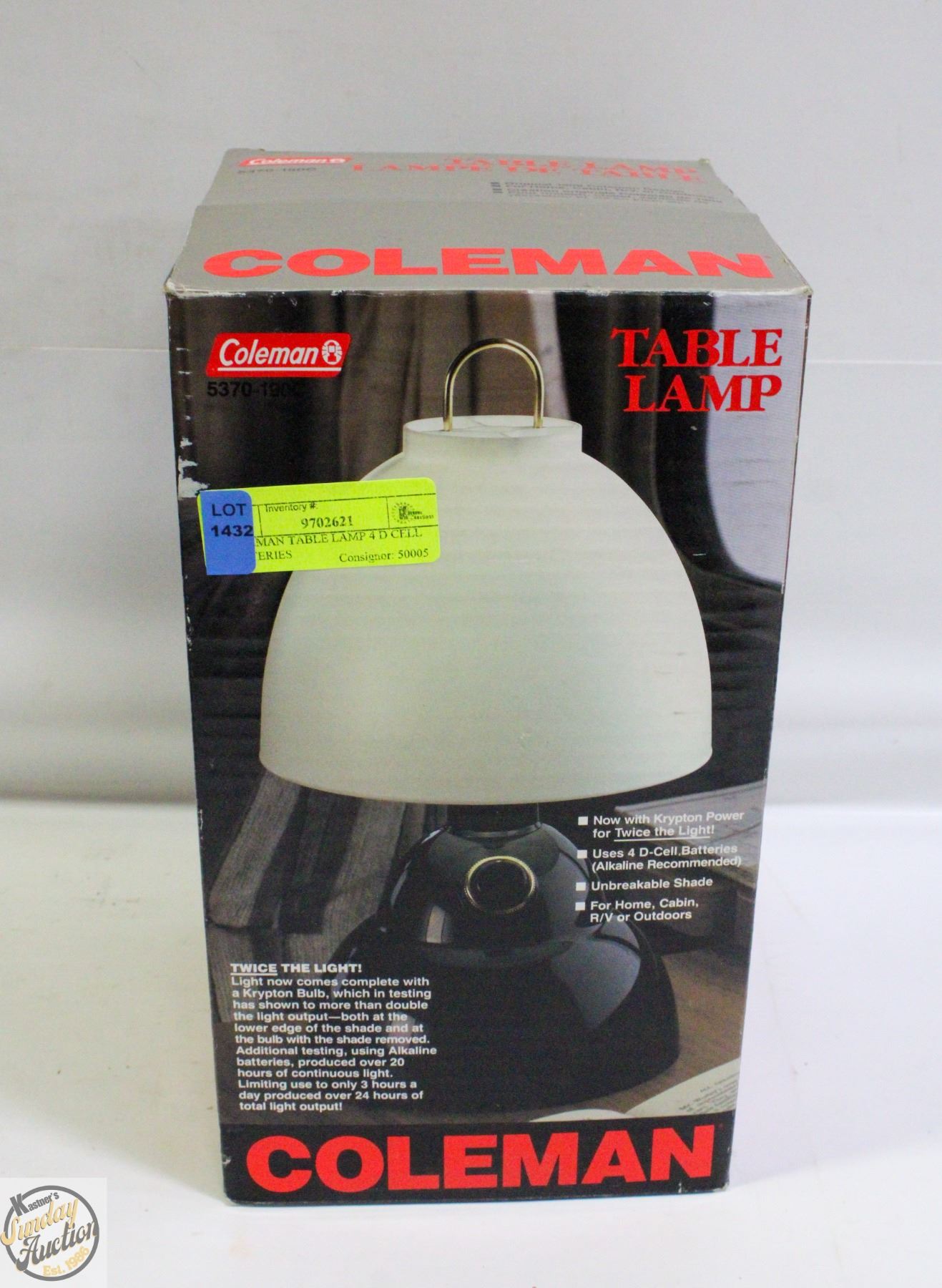 COLEMAN TABLE LAMP 4 D CELL BATTERIES