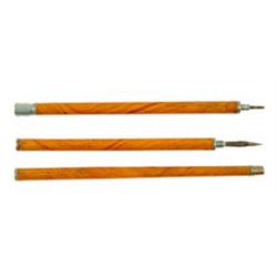 COLLAPSIBLE SCRIBES CANE. The three 12-1/2" sections contain a pen, an ink well and a pencil. The sections screw together to make a 33-3/4" cane. CONDITION: Ferules are aluminum and show much wear. Painted faux finish on the sections show areas of wear and one area of damage. 4-51299 FS486
