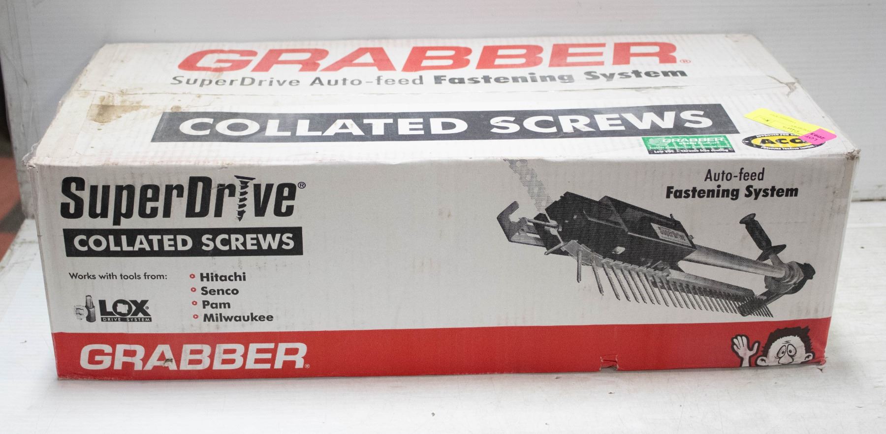 GRABBER 8X1 5/8" AUTOFEED COLLATED SCREWS CASE OF 6000 **ALL ITEMS MUST BE REMOVED BY 5PM SATURDAY, JANUARY 6TH 2023. ALL REMAINING ITEMS WILL BE SUBJECT TO A $6.00 PER DAY STORAGE CHARGE. ANY ITEMS REMAINING AFTER MONDAY, JANUARY 22ND, 2023 WILL BE CONSIDERED FORFEITED. NO REFUNDS WILL BE ISSUED FOR FORFEITED ITEMS. TO SCHEDULE A PICK UP APPOINTMENT CLICK HERE