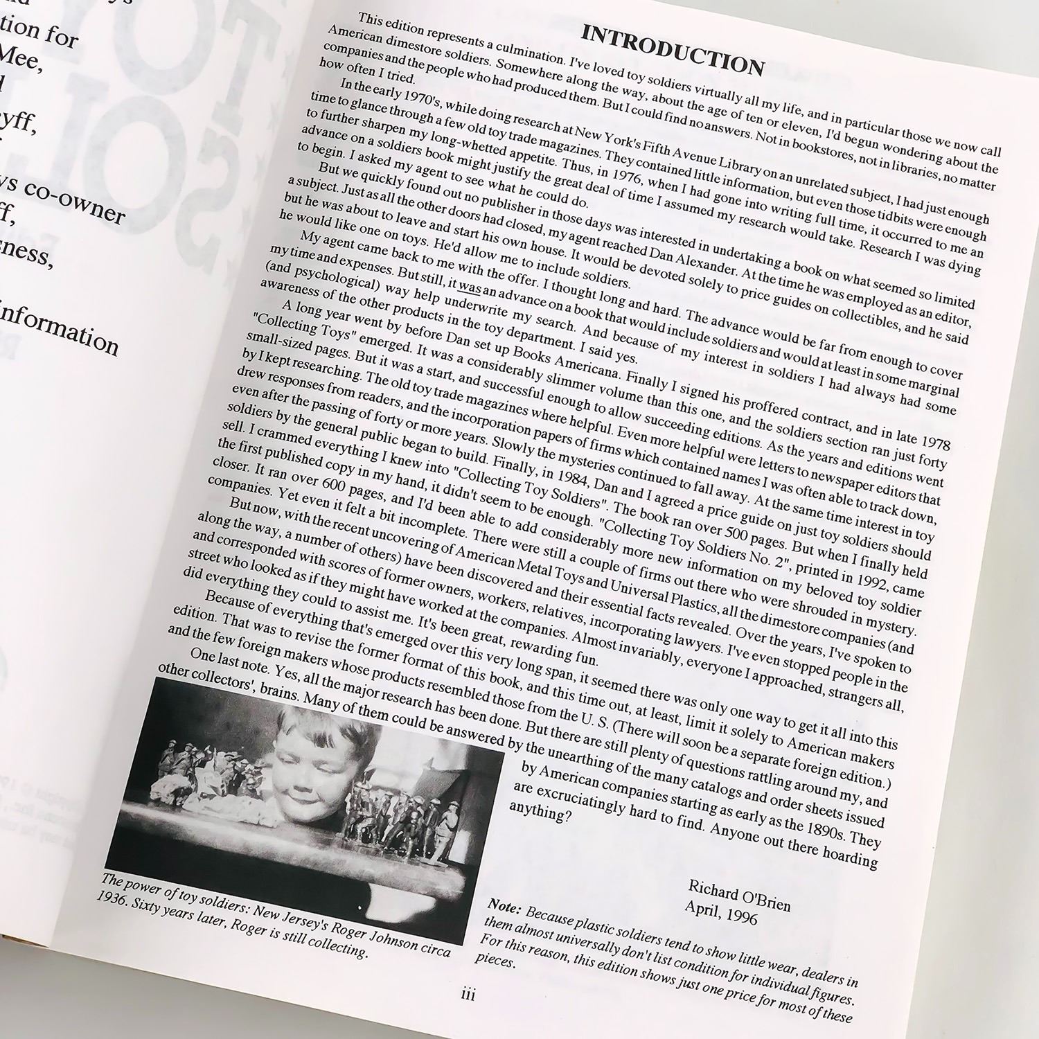 #8849 - COLLECTING AMERICAN-MADE TOY SOLDIERS - IDENTIFICATION & VALUE GUIDE BY RICHARD O’BRIEN. SOFTCOVER BOOK - 720 PAGES. MEASURES: 11” (28 CM) HIGH BY 8.5” (21.5 CM) WIDE AND 1.5” (4 CM) THICK***ITEM(S) LOCATED IN LETHBRIDGE ALBERTA. FREE TRANSPORT TO EDMONTON OFFICE AVAILABLE FOR THIS AUCTION. WORLDWIDE SHIPPING IS AVAILABLE FOR ALL ITEMS