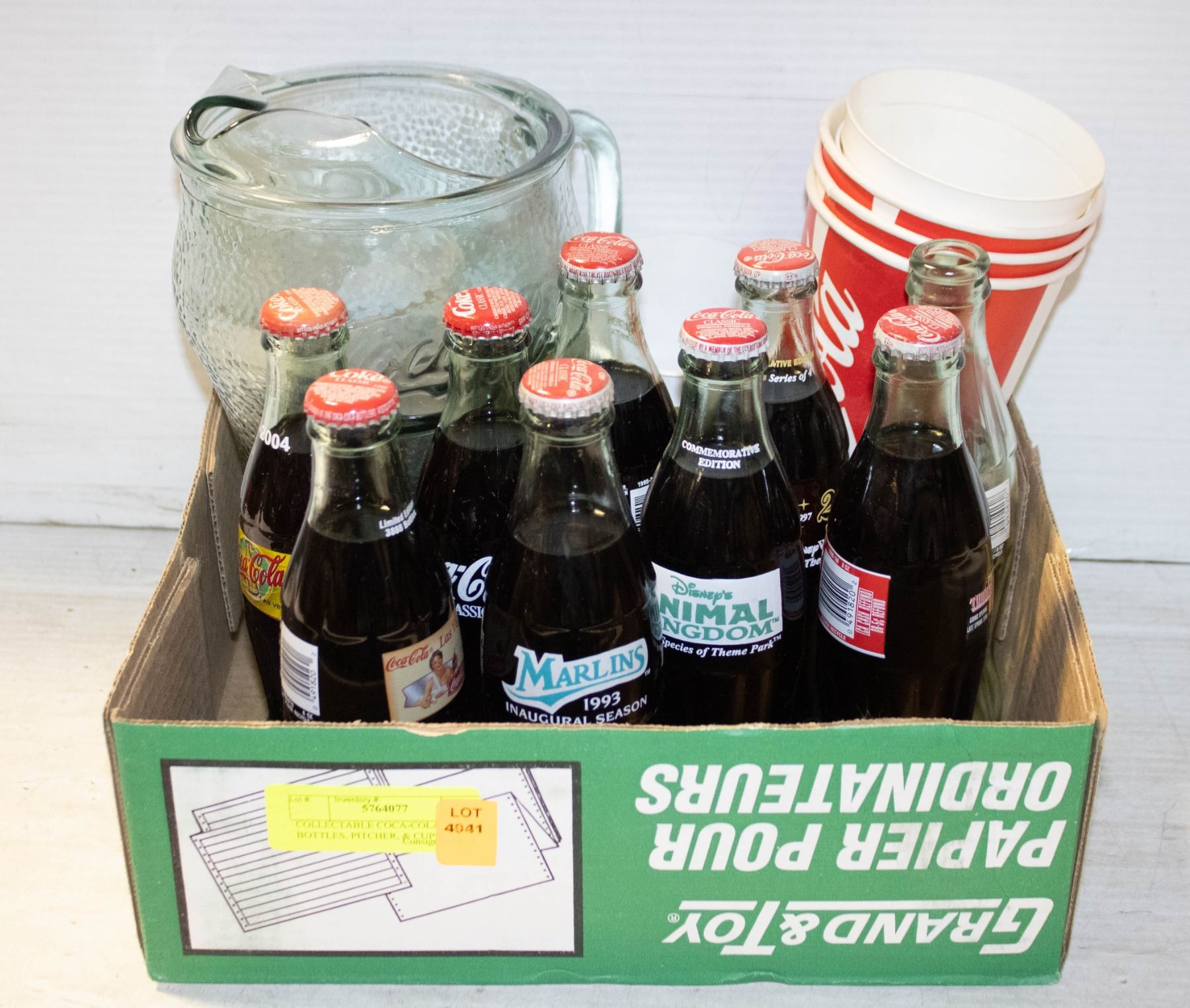 COLLECTABLE COCA-COLA BOTTLES, PITCHER, & CUPS