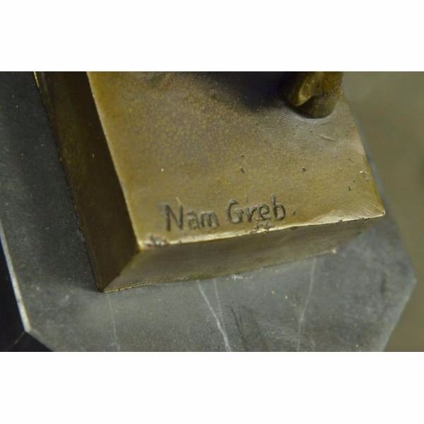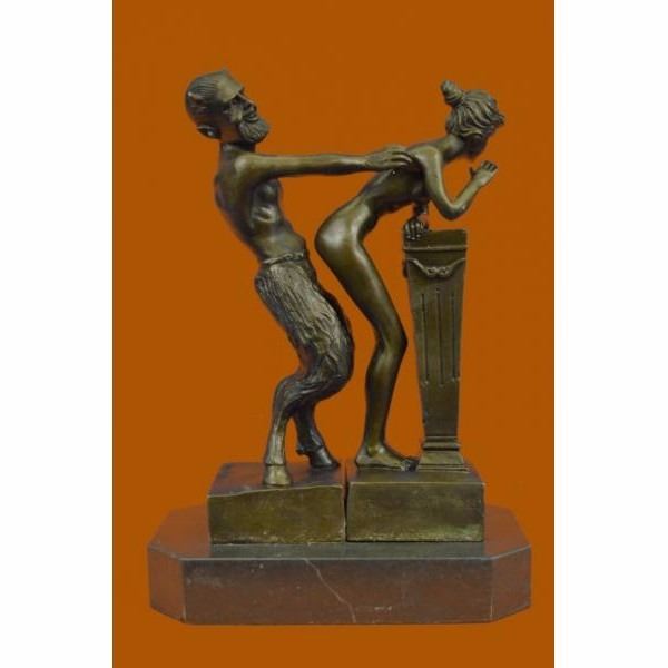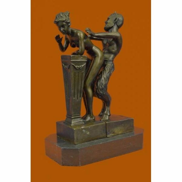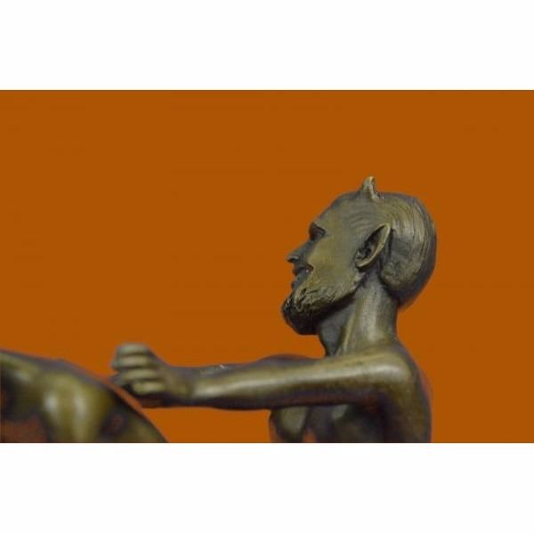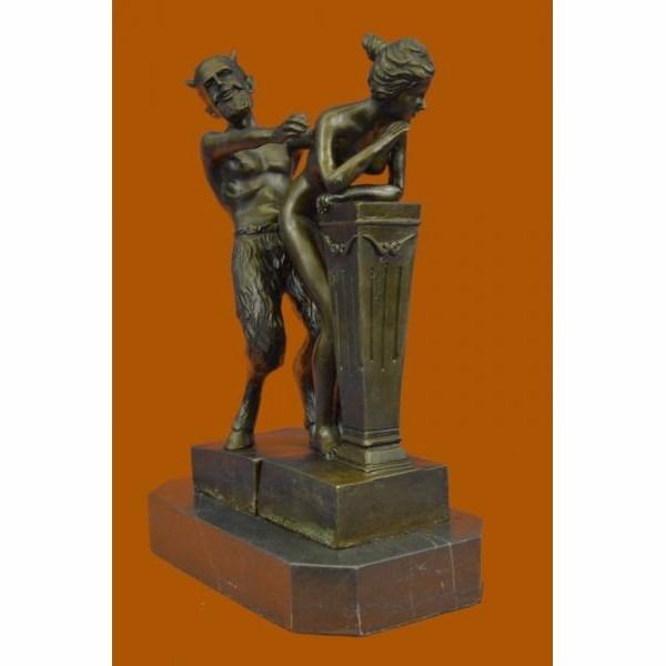 The Devil and the Beauty... This is a great two partly Erotic Act Vienna Bronze. Designed by Bergmann, Austria. The Motiv - a naked devil is touching the shy nude virgin from behind. Thanks to the 2 partly design, the devil can be placed in many different positions. Also nice to watch -the face to face demonstration or the side- fusion. A very good Art object, nude faun and ducked virgin. Signed on the inside of bottom. Faun/Satyr and virgin figures are madden of finest bronze material, casted in our foundry in an amazing agreement to the original .A focal point in every exhibition! From the famous designer Bergman, designer of countless lovely erotica figures.An absolute eye catcher for friends of Vienna Bronze collectors. Our own production control, saves the best quality of rare bronze objects.This sculpture was crafted using the lost wax method. It rests on a black marble base. It is signed Nam Greb Condition: This sculpture is in perfect condition. Bronze Dimensions with Marble Base:Height 10" x Width 7" Marble Dimensions: 7" X 4" Height without base: 9" Weight : 8 LBS Inventory : 28STE35817082