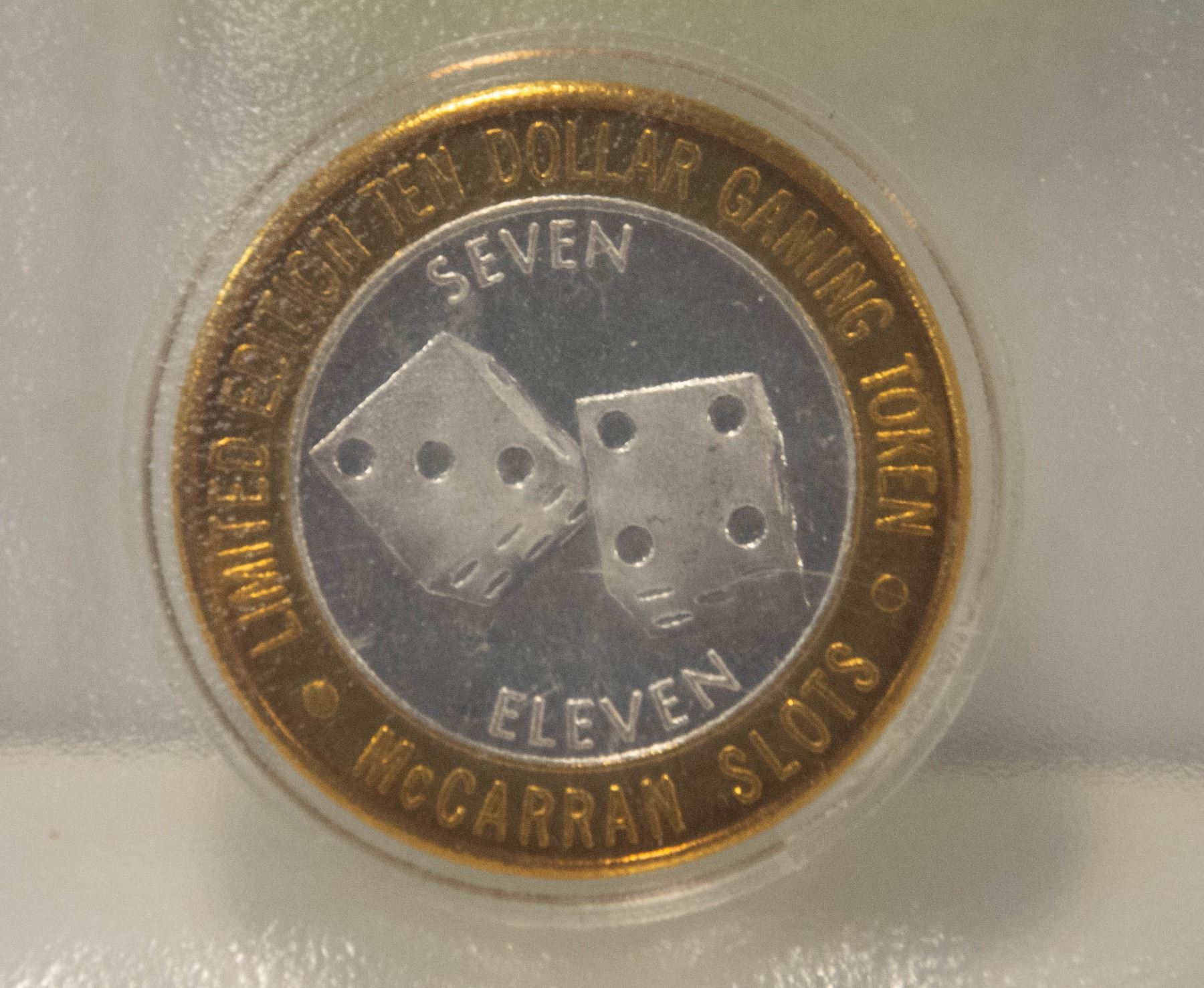 $10 CASINO GAMING TOKEN - "SEVEN ELEVEN MCCARRAN SLOTS" **ALL ITEMS MUST BE REMOVED BY 5PM SATURDAY, NOVEMBER 18TH 2023. ALL REMAINING ITEMS WILL BE SUBJECT TO A $6.00 PER DAY STORAGE CHARGE. ANY ITEMS REMAINING AFTER MONDAY, DECEMBER 4TH, 2023 WILL BE CONSIDERED FORFEITED. NO REFUNDS WILL BE ISSUED FOR FORFEITED ITEMS. TO SCHEDULE A PICK UP APPOINTMENT CLICK HERE
