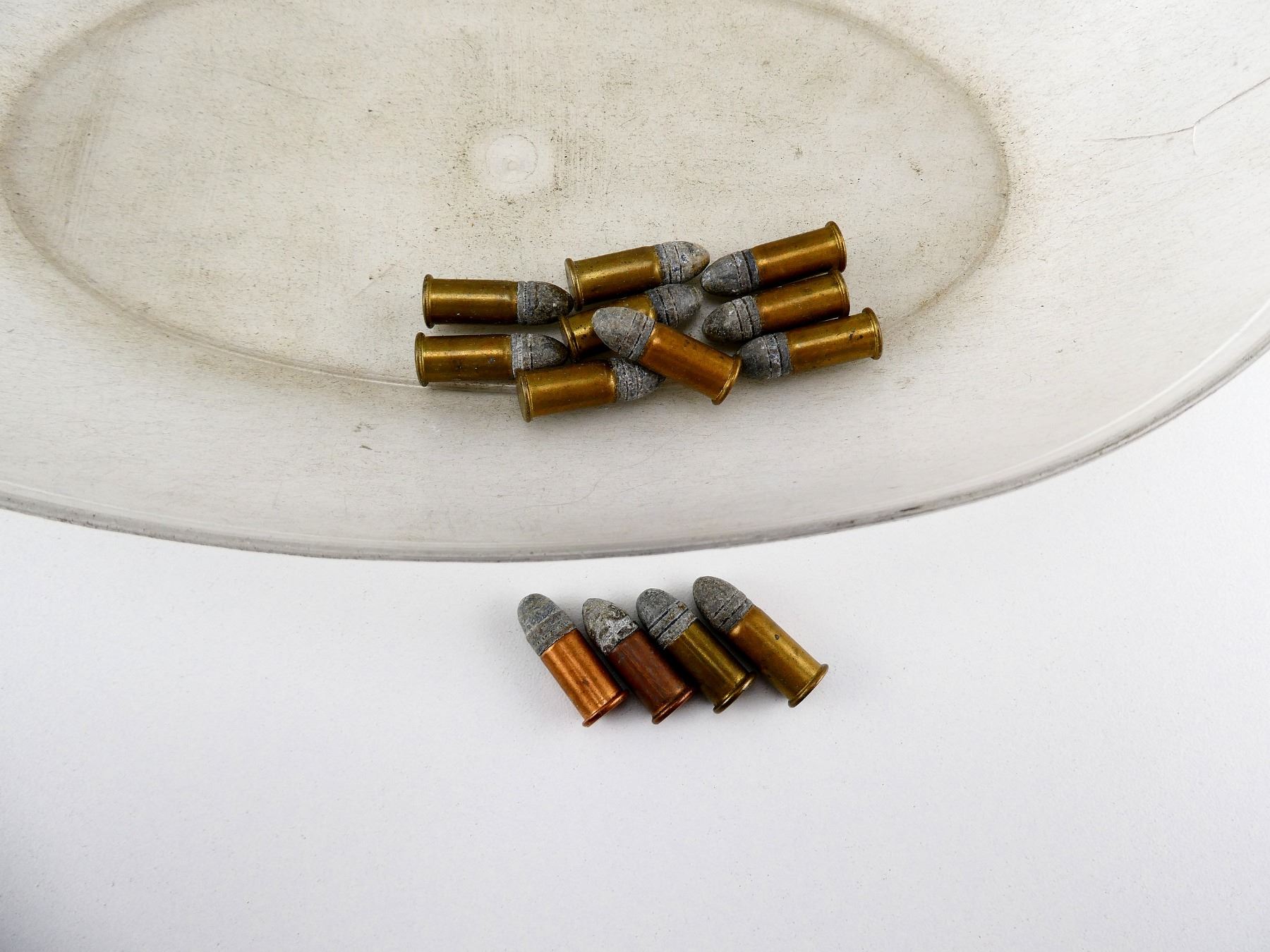 LOT INCLUDES; APPROX. (13) RNDS, VARIOUS HEAD STAMPS INCLUDING; "D", RAISED "P", ETC.