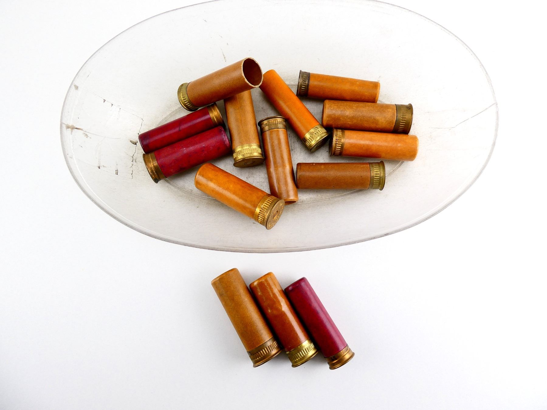 LOT INCLUDES; APPROX. (11) RNDS, VARIOUS HEADSTAMPS INCLUDING; "COLONY" & "COLONIAL", ASSORTED SHOT SIZES; #4, #5, #6, #1BUCK, ETC., (3) PRIMED SHOT SHELL HULLS, SEE PHOTOS.