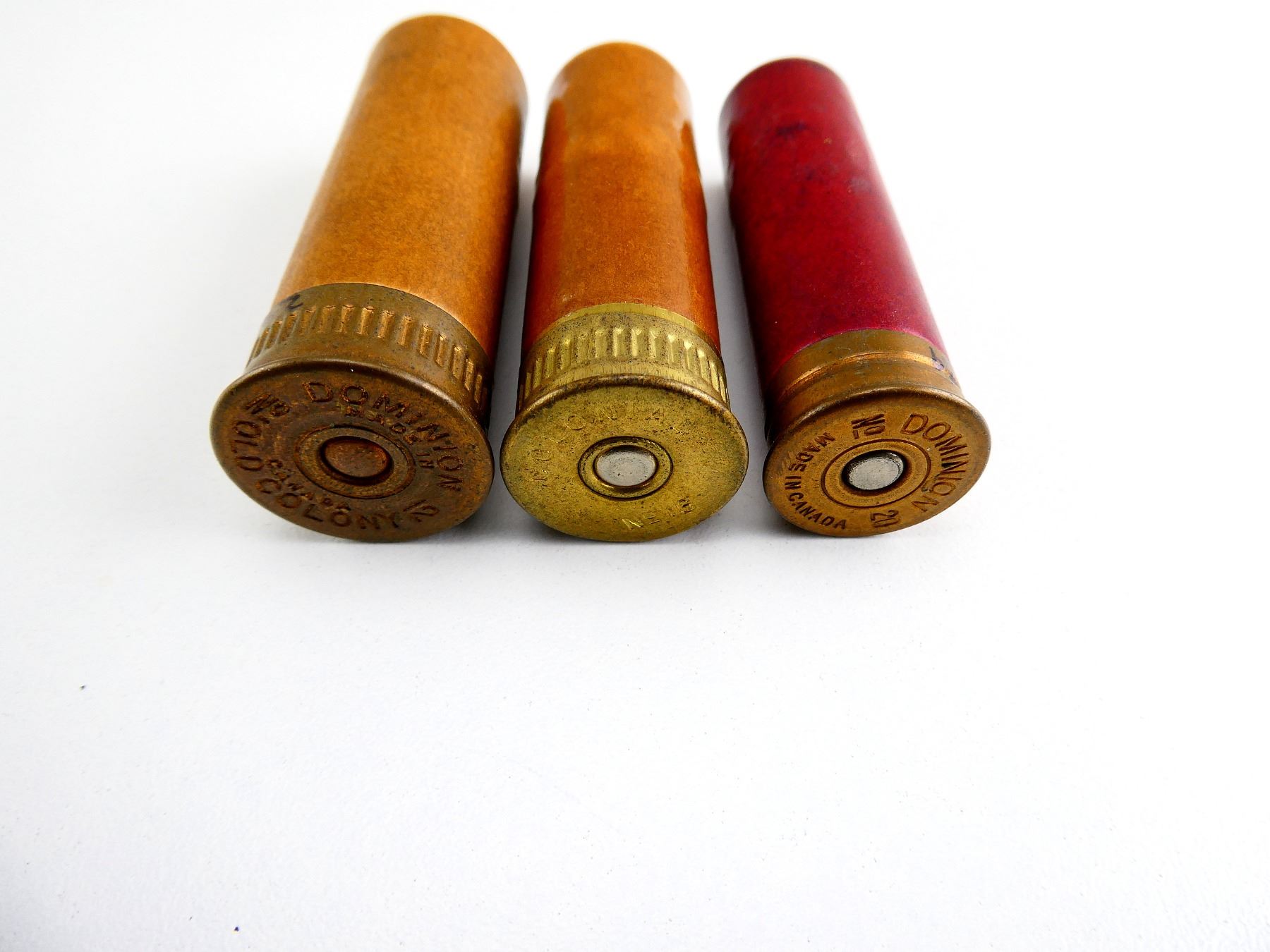COLLECTIBLE ASSORTED DOMINION 12 GAUGE / 16 GAUGE / 20 GAUGE 2 3/4" SHOT SHELL AND PRIMED SHOT SHELL