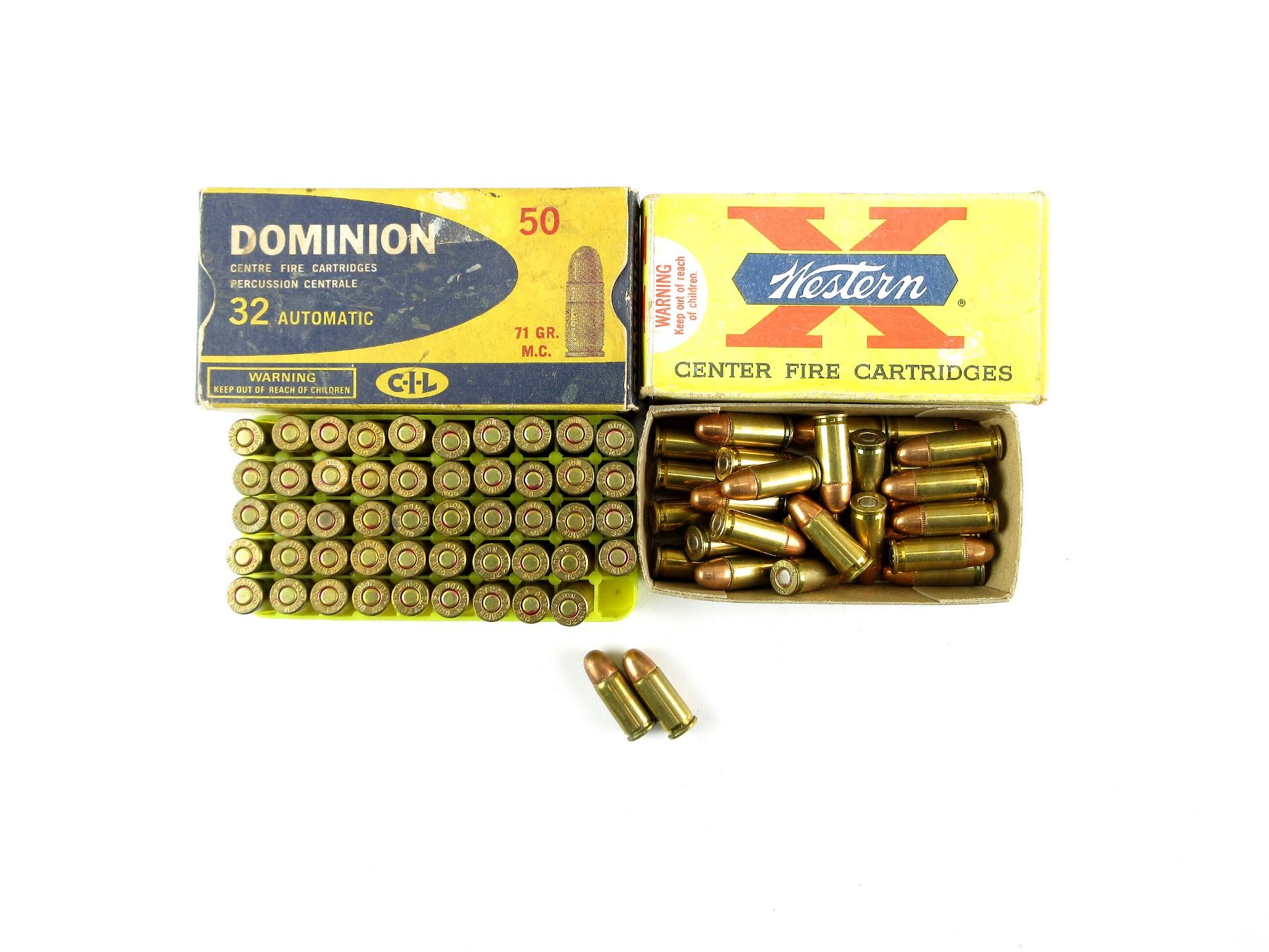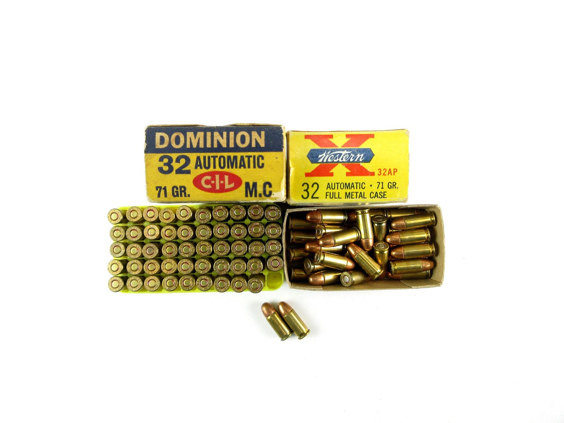 COLLECTIBLE ASSORTED DOMINION AND WESTERN .32 AUTOMATIC AMMO LOT