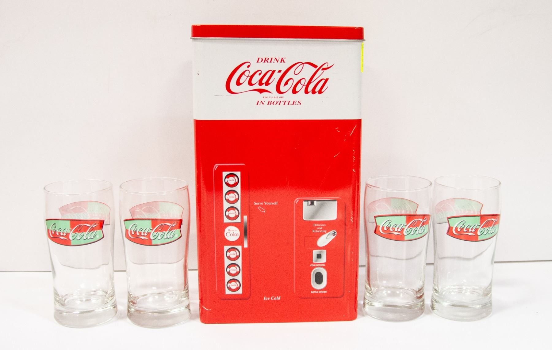 COLLECTIBLE COCA COLA 4PC - 8 OZ GLASS SET IN TIN