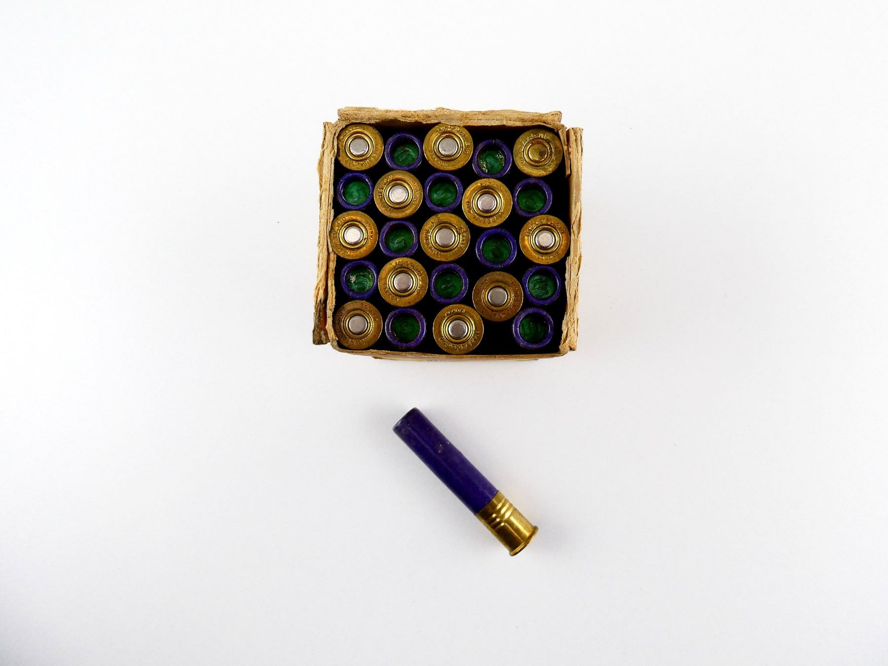 LOT INCLUDES; APPROX. (25) RNDS, SHOT SIZE #5, IN ORIGINAL COLLECTIBLE BOX, SHOWS SOME WEAR, SEE PHOTOS.