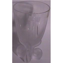 COLLECTIBLE LALIQUE ART GLASS PEDESTAL DESIGN VASE, "Osmonde", (retired), having an etched feather design resting on a swirl design base; signed in script "Lalique, France"; 8 inch height (no box)