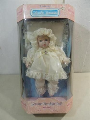 COLLECTIBLE MEMORIES PORCELAIN BABY DOLL. AS SHOWN. VIEW PICTURE FOR DETAIL.