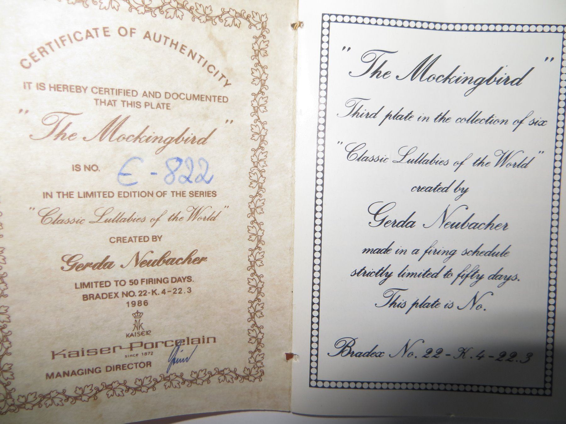 COLLECTIBLE PLATE (BRADEX) *THE MOCKINGBIRD* (GENUINE KAISER PORCELAIN-7 3/4" WIDE) *NIB*