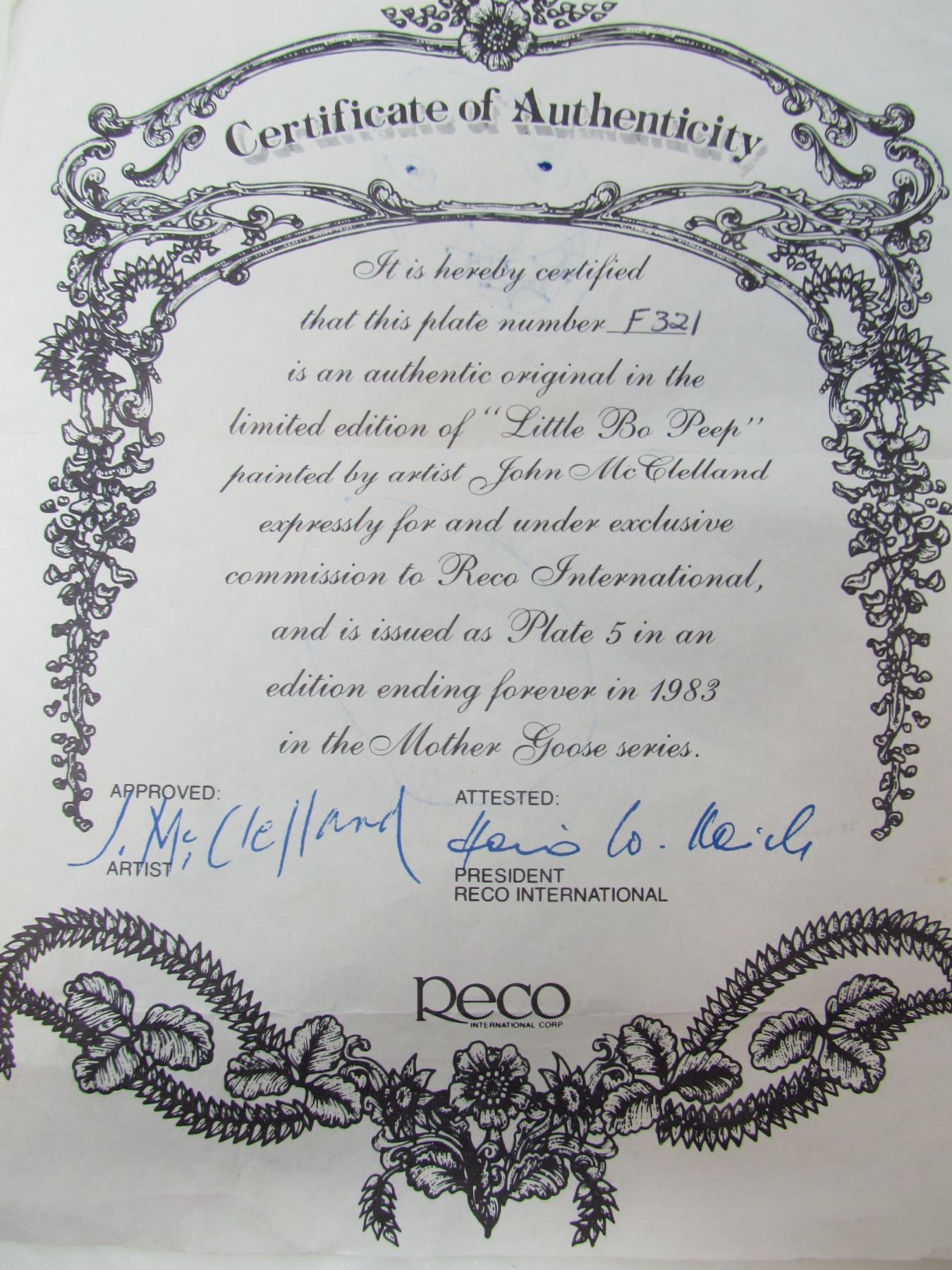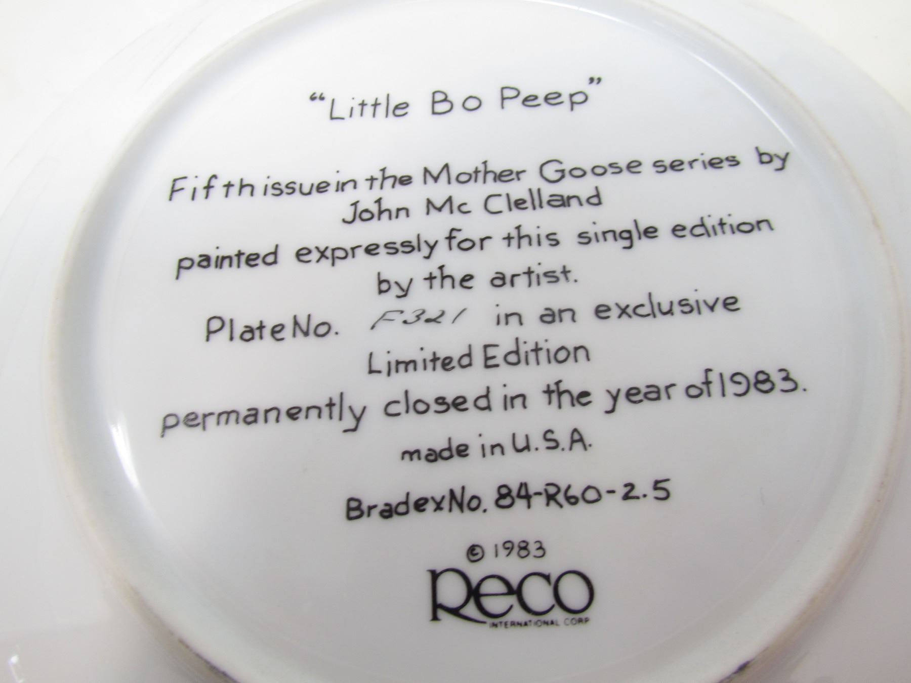 COLLECTIBLE PLATE (GIRL AND SHEEP "LITTLE BO PEEP") *BY JOHN MCCELLAND* (PLATE # 5F321)