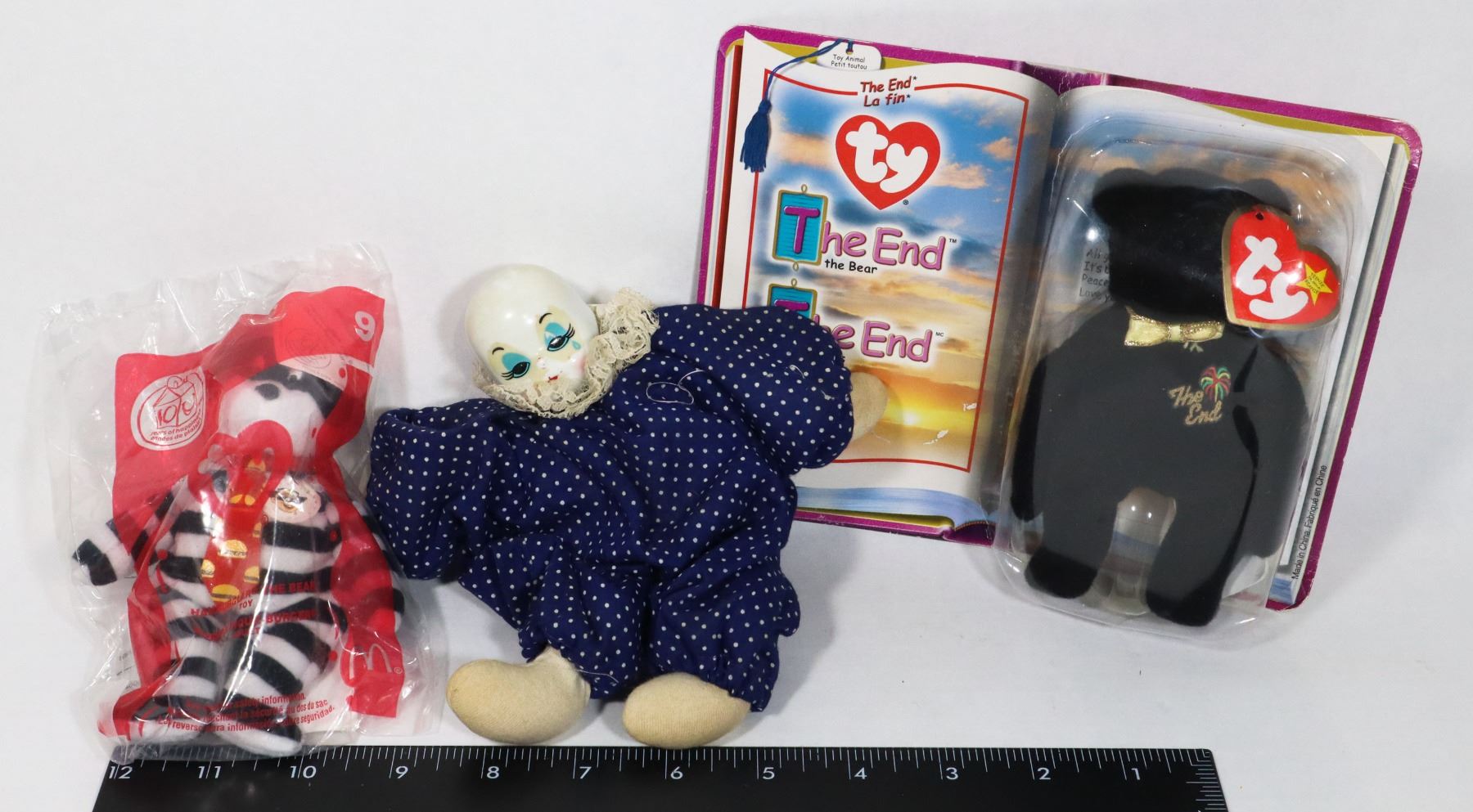 HEAD DOLL. 1990 TY THE END BEAR MCDONALD'S TOY. TY 2004 NUMBER 9 HAMBURGLAR THE BEAR MCDONALD'S HAPPY MEAL TOY HAVE TAGS