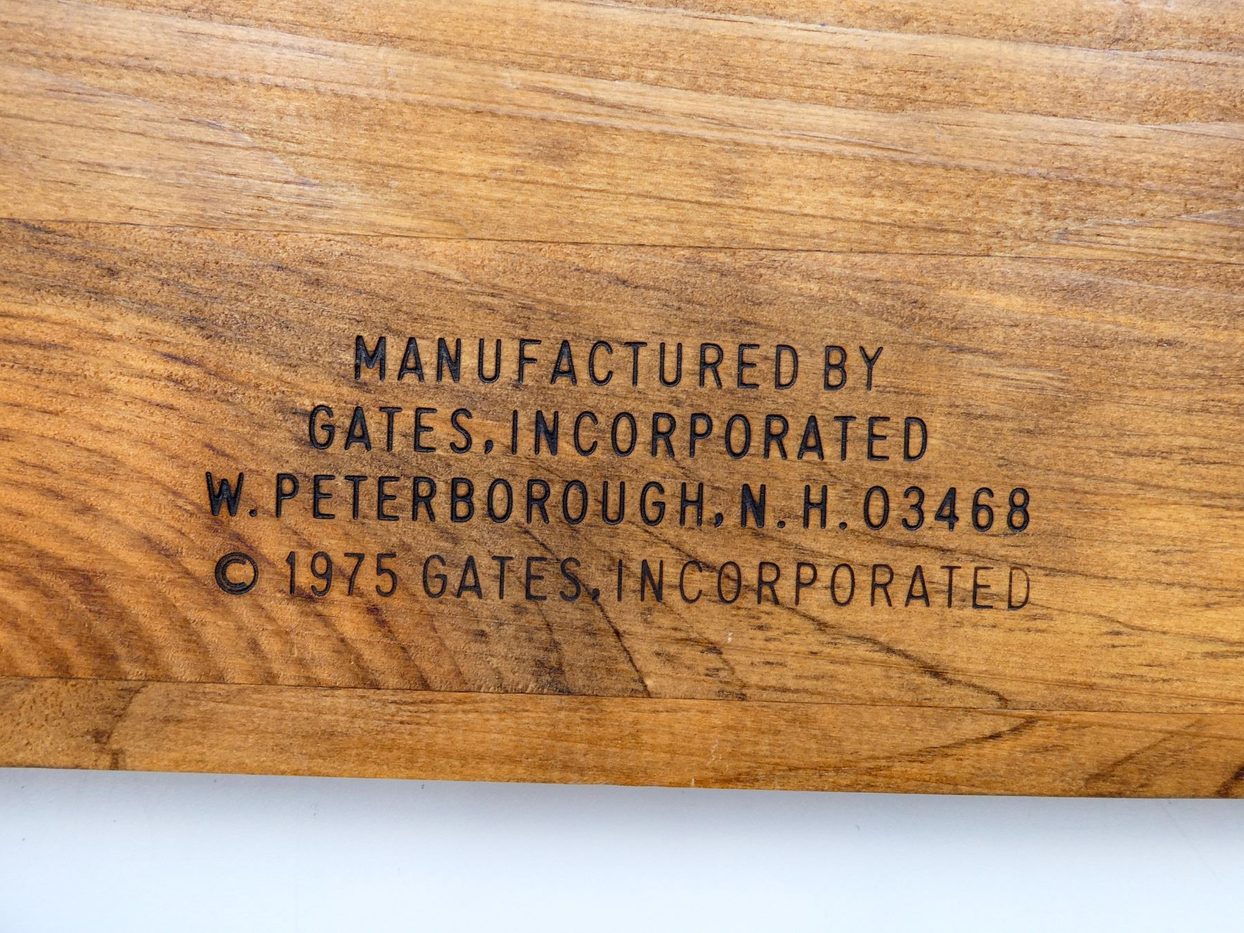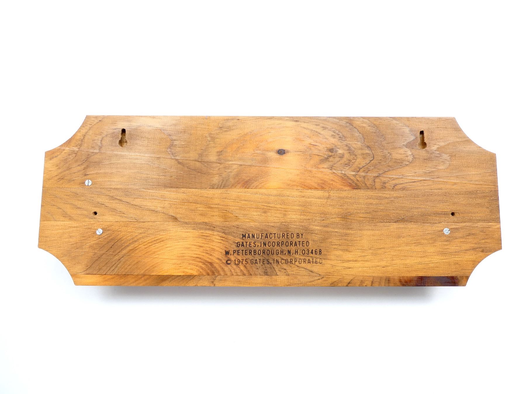 (1) WOOD SINGLE GUN RACK WITH IMITATION ANTLER HOOKS (HOOKS ARE LOOSE), FRONT MARKED: "WINCHESTER", BACK MARKED: "GATES INCORPORATED W. PETERBOROUGH, N.H.", ETC., APPROX. 24" X 9" X 3". SEE PHOTOS.