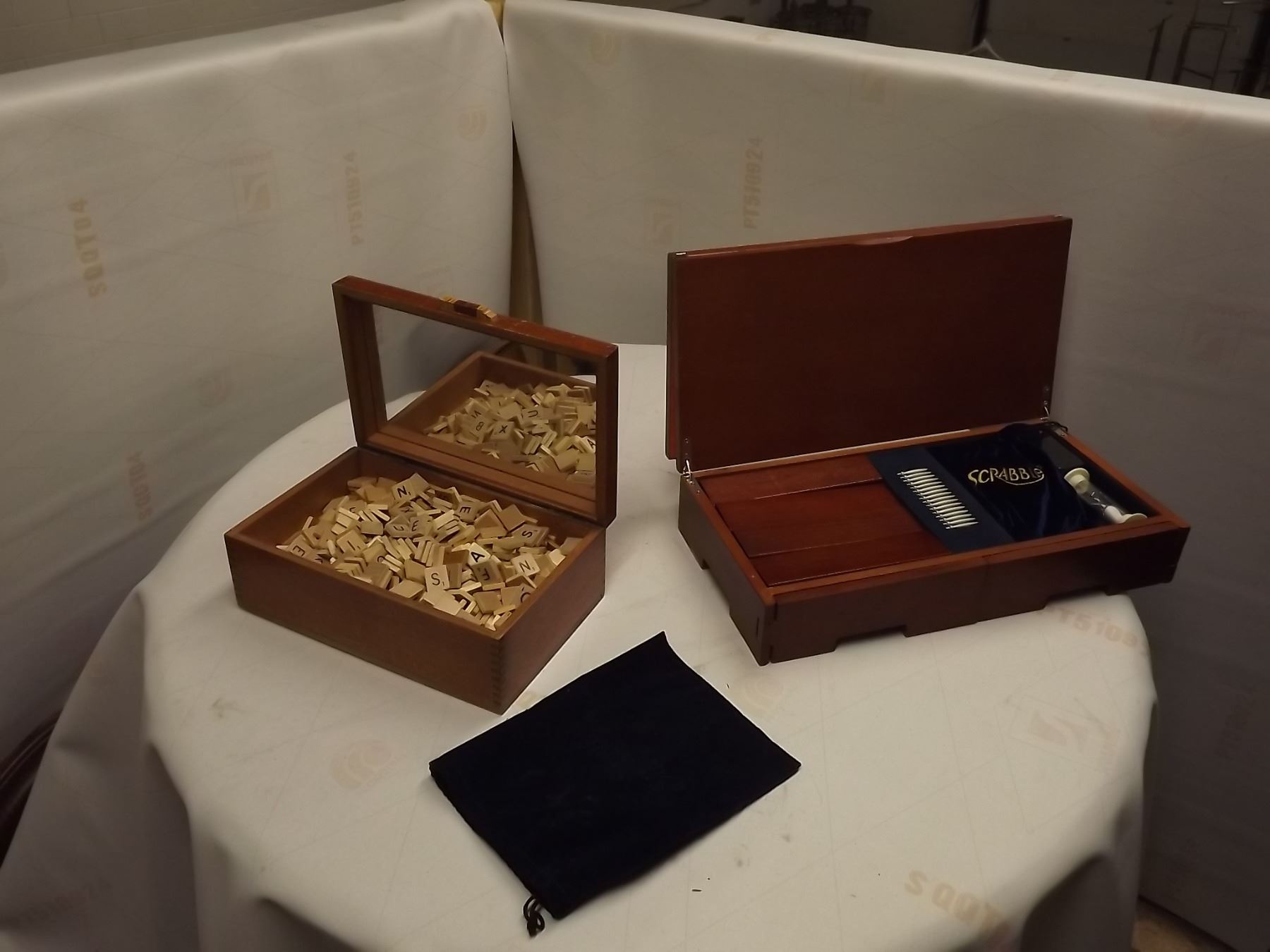 COLLECTIBLE WOODEN SCRABBLE GAME W/ LARGE BOX OF...