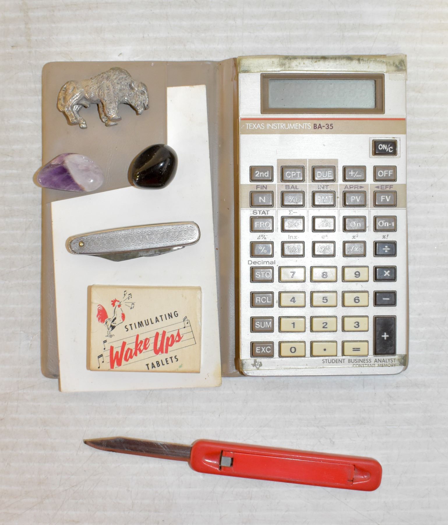 COLLECTIBLES BOX - 2 KNIVES, TEXAS INST CALCULATOR