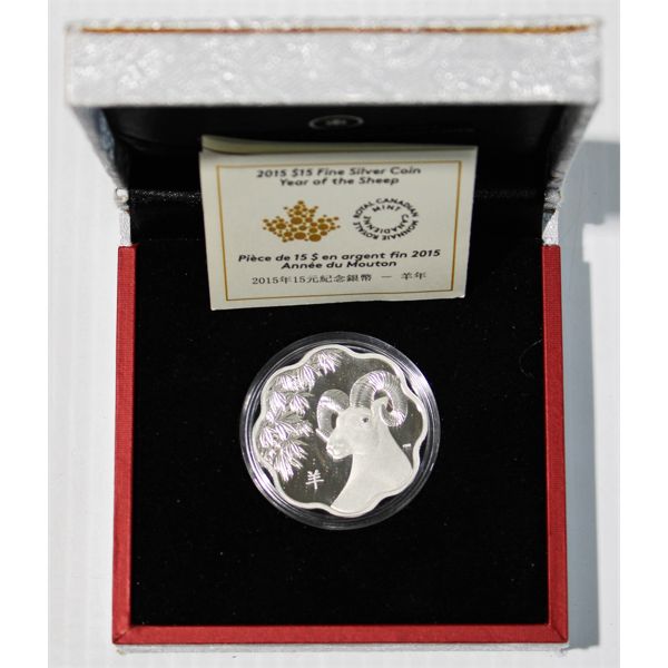 2015 YEAR OF THE SHEEP $15 (.9999 SILVER COIN-26.7 GRAMS) NO TAX