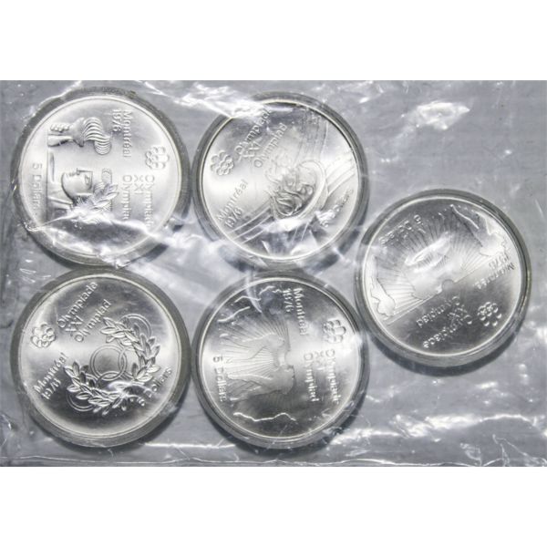 5-$5 MONTREAL XXI OLYMPIC COINS (3.95 OZ SILVER IN TOTAL)