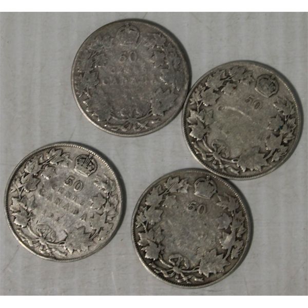 4 CANADA SILVER HALF DOLLARS 50 CENT COINS
