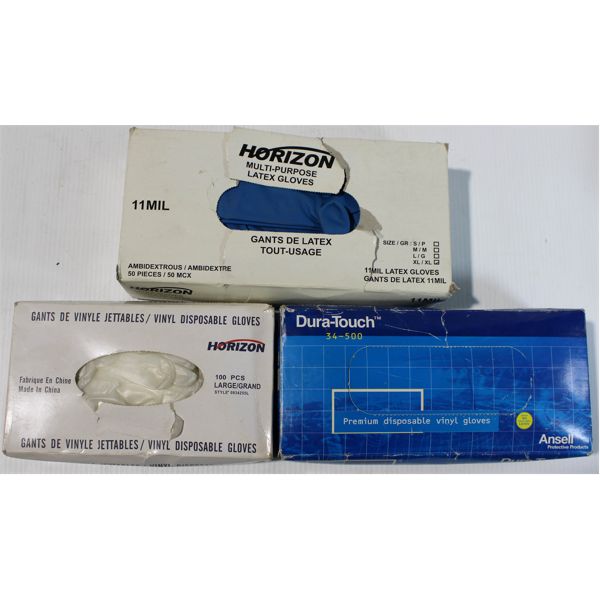 3 BOXES OF DISPOSABLE GLOVES, 2 LARGE & 1 XL