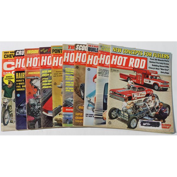 9 VINTAGE HOT ROD MAGAZINES, '66, '67, '68 & 1 CARCRAFT