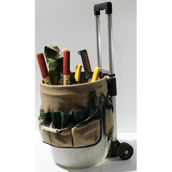 MCGUIRE NICHOLAS ROLLING TOOL POUCH W/ 3 GARDEN SHEARS & NEW 21" LAWNMOWER BLADE