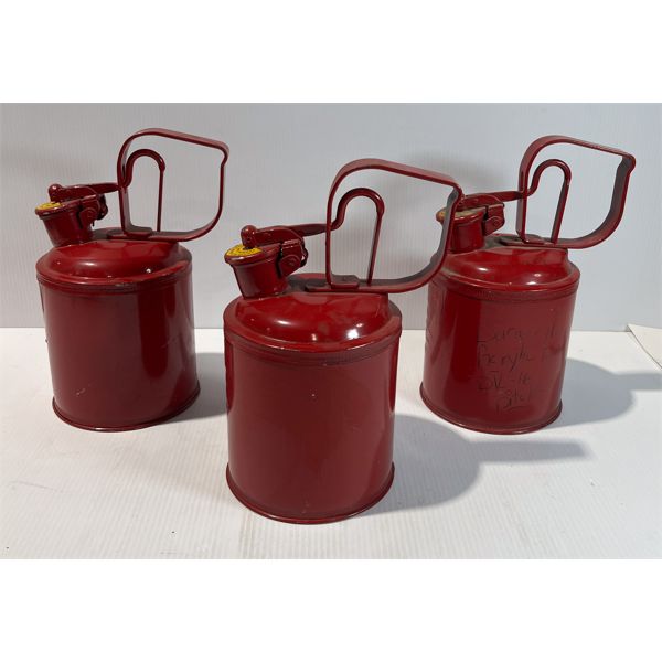 3 NEW VINTAGE RED METAL SAFETY CANS