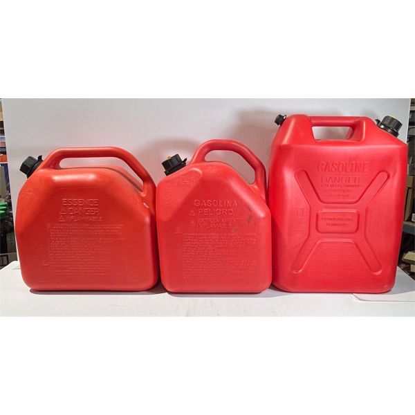 3 MISC. 20 LITRE / 5.3 GALLON GAS CONTAINERS
