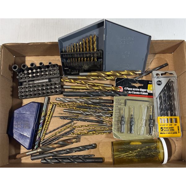 FLAT OF APPROX 25 MISC HOLE SAWS AND ADAPTERS