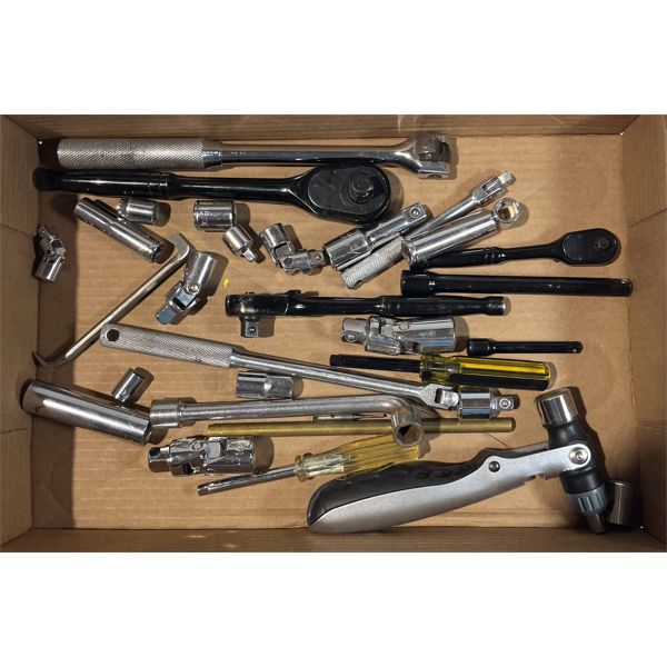 3 STANLEY 1/4”, 3/8”, & 1/2” RATCHETS & MISC ACCESSORIES