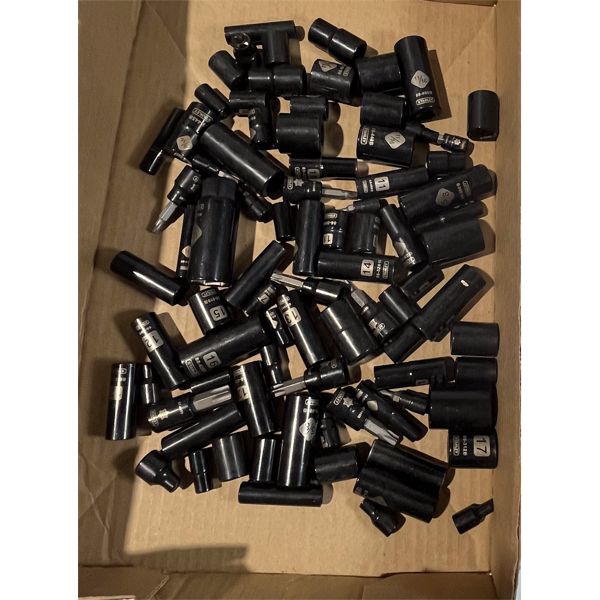 APPROX 75 MISC STANLEY SOCKETS & BITS, SAE/METRIC, 1/2”, 3/8”, 1/4”