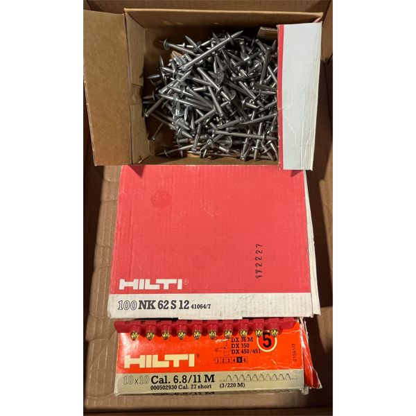 2 BXS OF HILTI NK2512 FASTENERS & BOX OF .27 CALIBRE HILTI LOADS