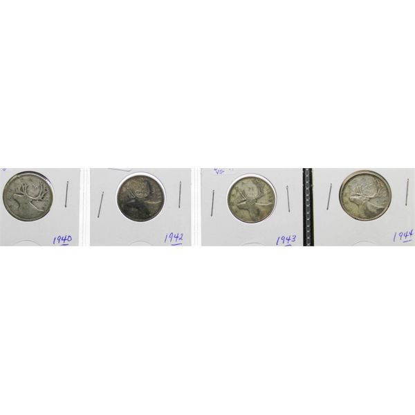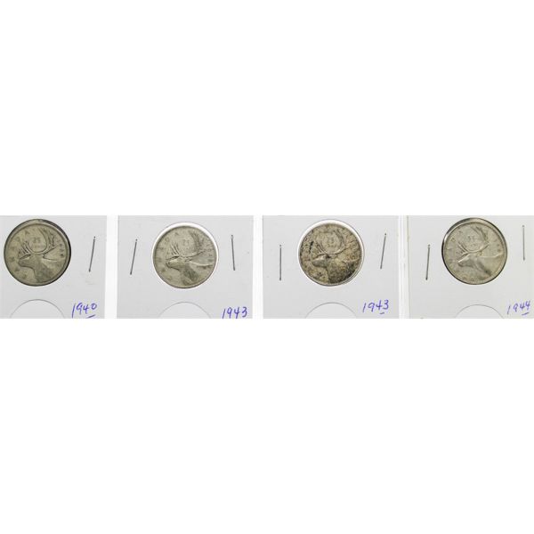 1940, 1943, 1943, 1944 SILVER 25 CENT COINS