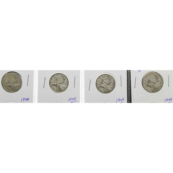 1944, 1944, 1949, 1949 SILVER 25 CENT COINS