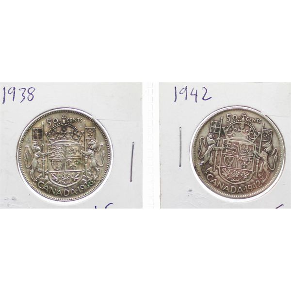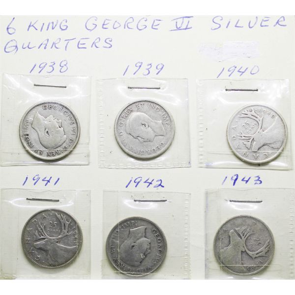 1938, 1939, 1940, 1941, 1942, 1943 SILVER 25 CENT COINS
