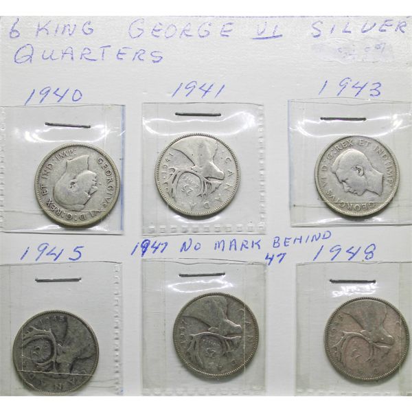 1940, 1941, 1943, 1945, 1947, 1948 SILVER 25 CENT COINS