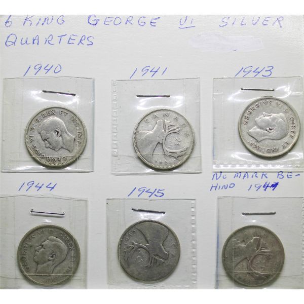 1940, 1941, 1943, 1944, 1945, 1947 SILVER 25 CENT COINS