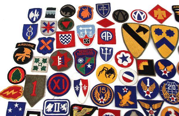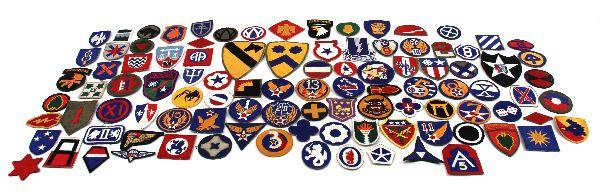 100 various patches of the US military. Mostly unit patches. Most are in excellent, unworn condition.