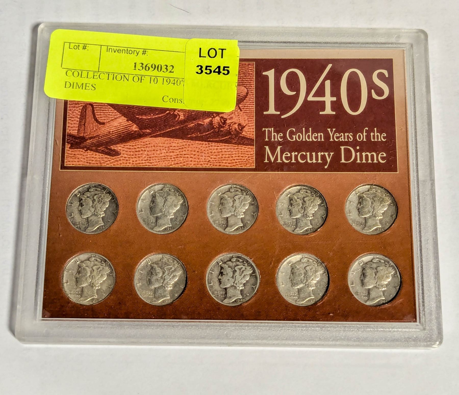 COLLECTION OF 10 1940'S MERCURY DIMES