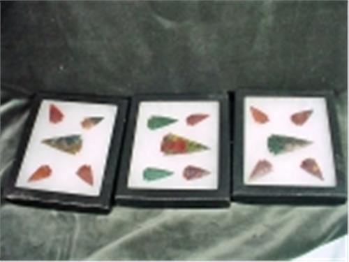 COLLECTION OF 15 ARROWHEADS INCLUDING PIECES OF VARIOUS SIZES AND COLORS. DISPLAY BOX NOT INCLUDED.