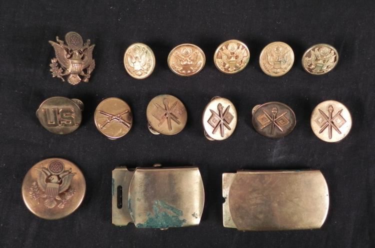 COLLECTION OF 15 PCS OF U.S. MILITARY BRASS-BUCKLES SEVERAL SIGNAL CORPS BRASS