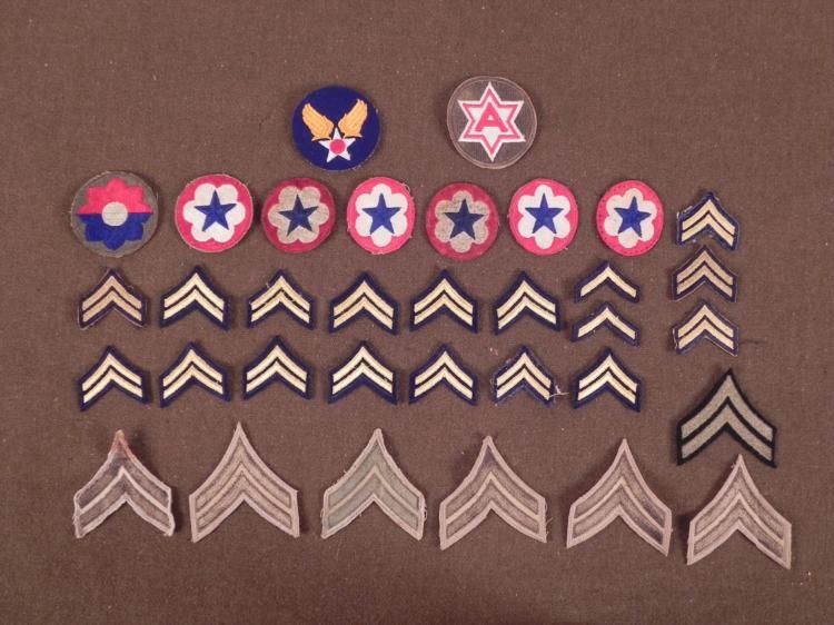 COLLECTION OF 34 UNIT PATCHES AND CHEVRONS * * VARIOUS