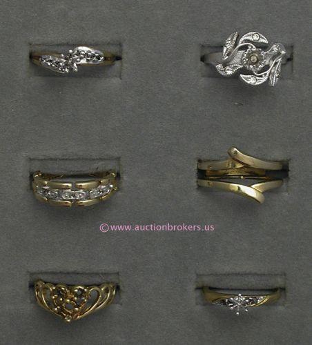 COLLECTION OF 6 PLATED FASHION RINGS INCLUDING MOUNTINGS WITHOUT STONES, RING GUARDS, BAND STYLE RIN