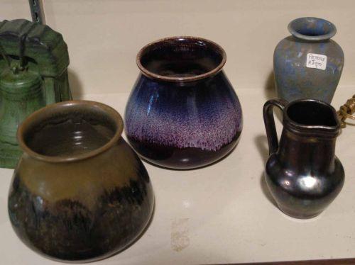 "COLLECTION OF AMERICAN ART POTTERY incl. Rookwood vase by Sara Sax (repaired), other Rookwood, Van Briggle, unmarked Fulper fairy lamp and more. packing and shipping (excluding insurance) $80"