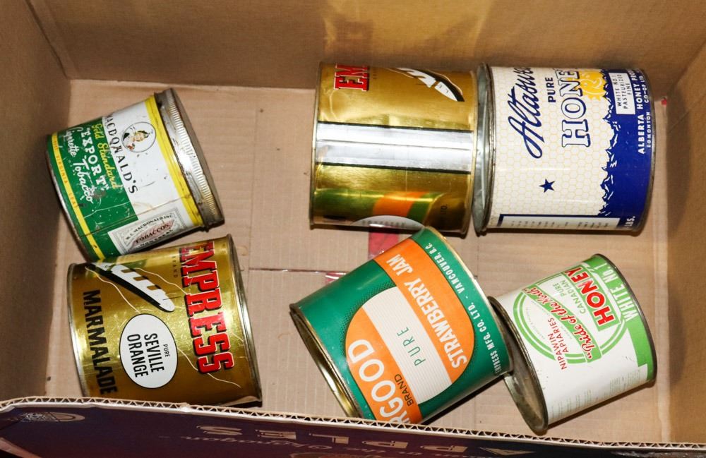 COLLECTION OF ANTIQUE HONEY, JAM AND SPICE TINS